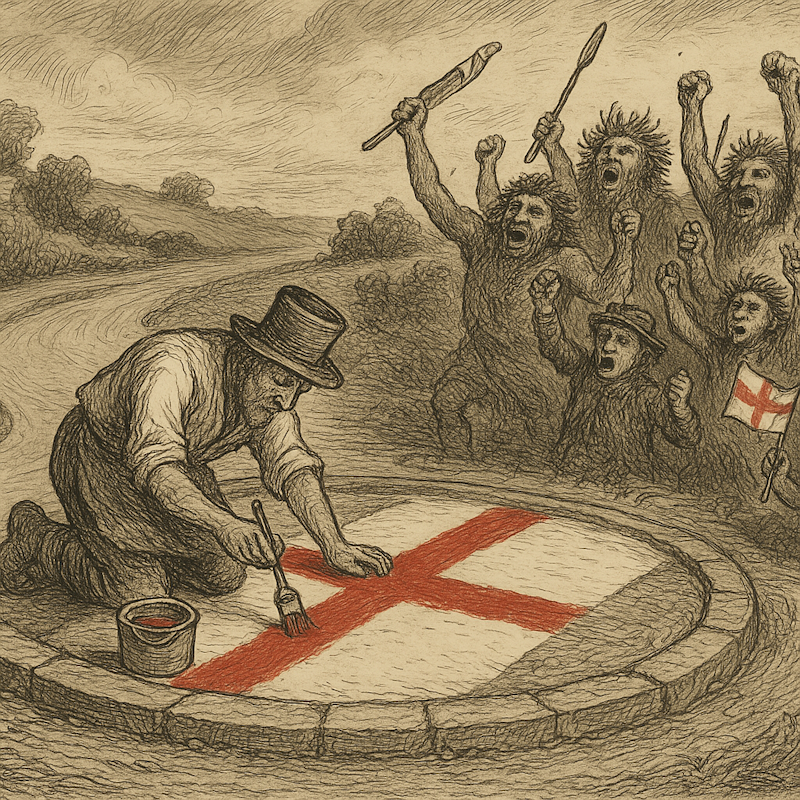 It’s no surprise that in a nation built on tea, biscuits, and the occasional desperate desire to cling to something — anything — that we end up reeling into a world of flag-waving to prop up the crumbling edifice of our pride.